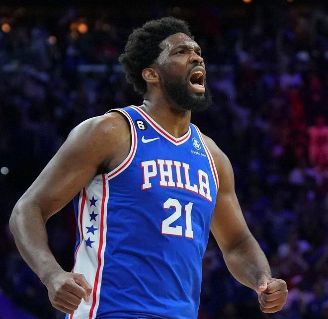 76人队乔尔·恩比德上半场强势反击,平息了外界的批评